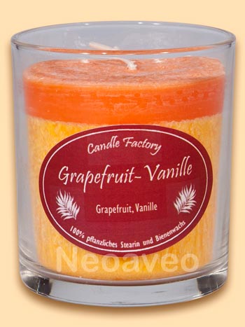 Grapefruit-Vanille Party Light Premium Duftkerze, immer ein angenehm duftendes Geschenk. Spritziger Pampelmusenduft mit Vanillenote. Party Lights Duftkerzen werden von Candle Factory als Premium Kerzen direkt im Whiskyglas gegossen. Hergestellt aus nachwachsendem pflanzlichem Wachs.