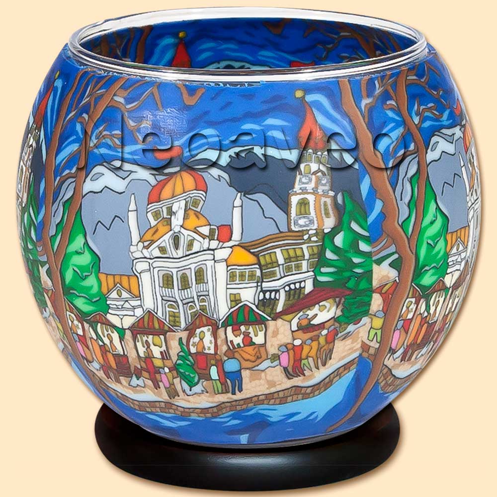 Meran Leuchtglas Lampe XXL, Gigant Tischleuchte, 30cm x 30cm, von Kerzenfarm Hahn, mit identischem Motiv aus der Leuchtglasserie als bunte Dekoleuchte. Inklusive Anschlußkabel, ohne Leuchtmittel. Tischlampe für Kinderzimmer, Jugendzimmer und Junggebliebene.