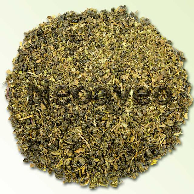 Aus Grüntee durch Aromatisierung mit Blüten, Jasmin, Rosen, gewonnen und reich an Duft ist.